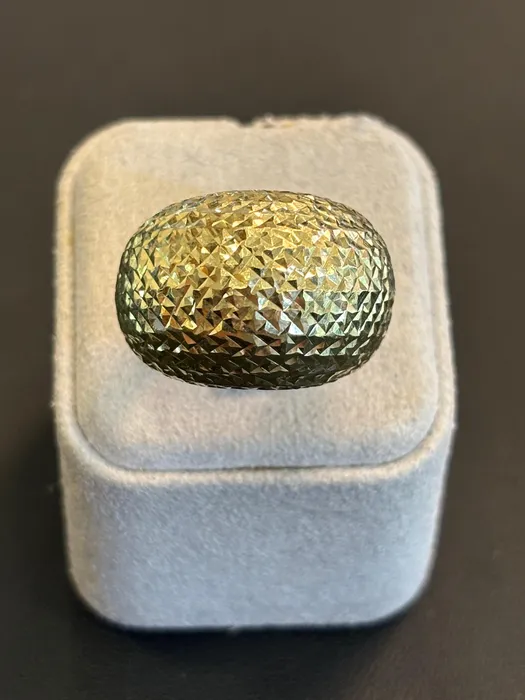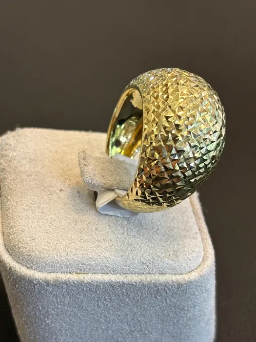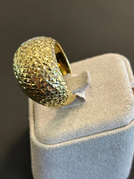 טבעת זהב צהוב 14K בעיצוב יחודי משובץ בזירקונים