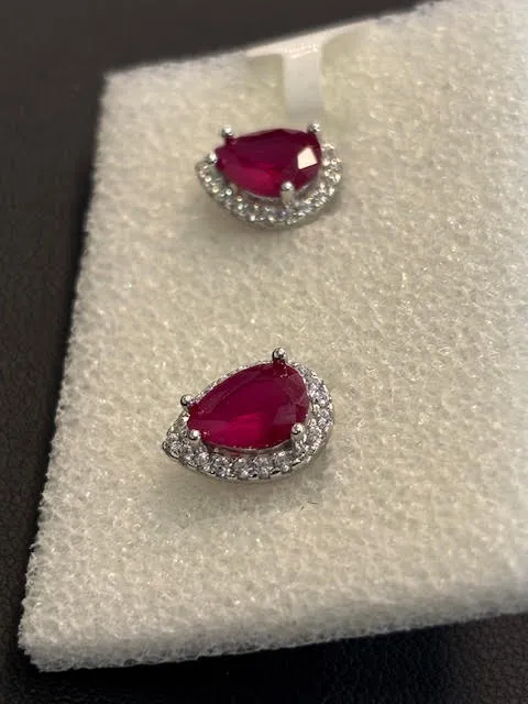 עגילי כסף 925 משובץ בזירקונים ואבני רובי
