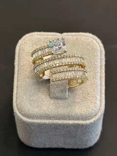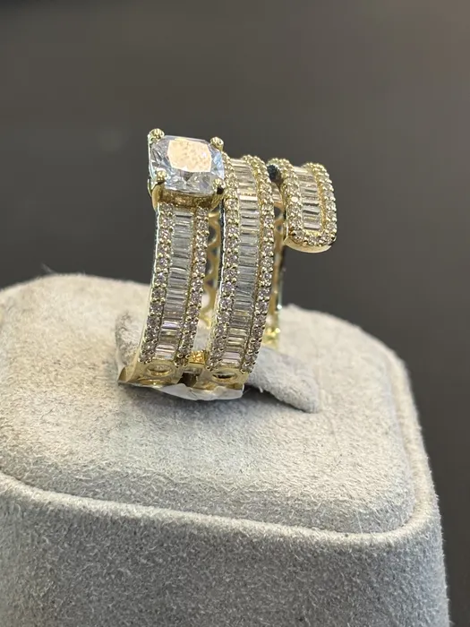 טבעת זהב צהוב 14K בעיצוב יחודי משובץ בזירקונים