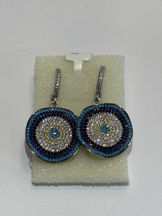 עגילי כסף 925 משובצים זירקונים צבעוניים