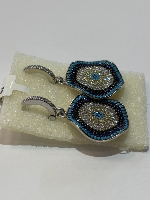 עגילי כסף 925 משובץ בזירקונים ואמרלדים